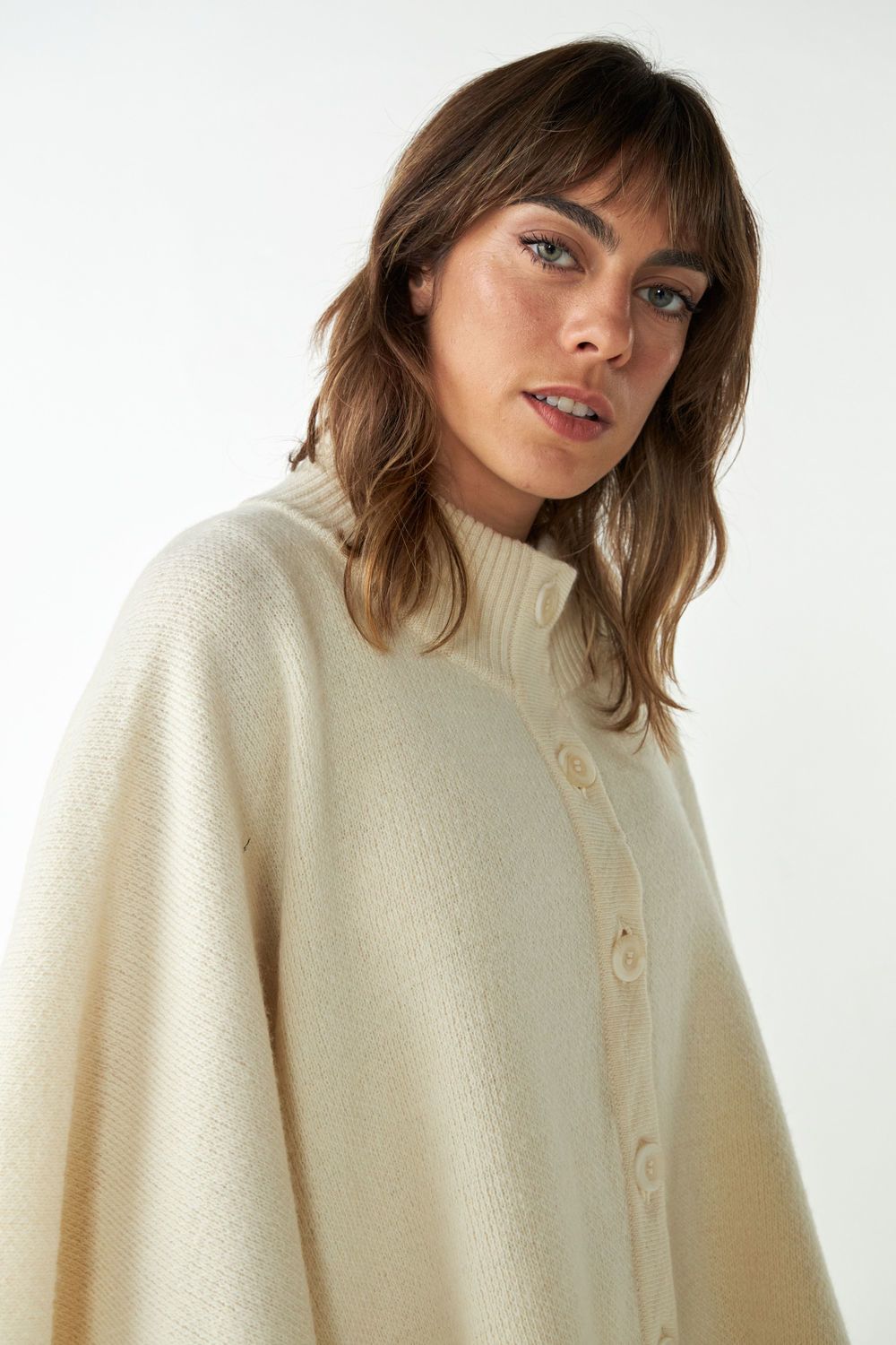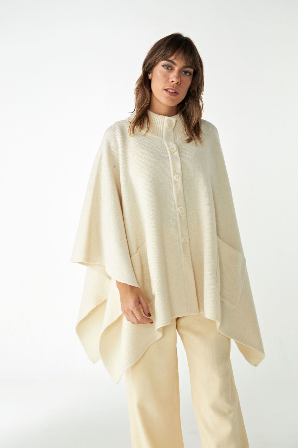 Capa de tejido de punto, con botones y bolsillos en la delantera. Una prenda clásica,