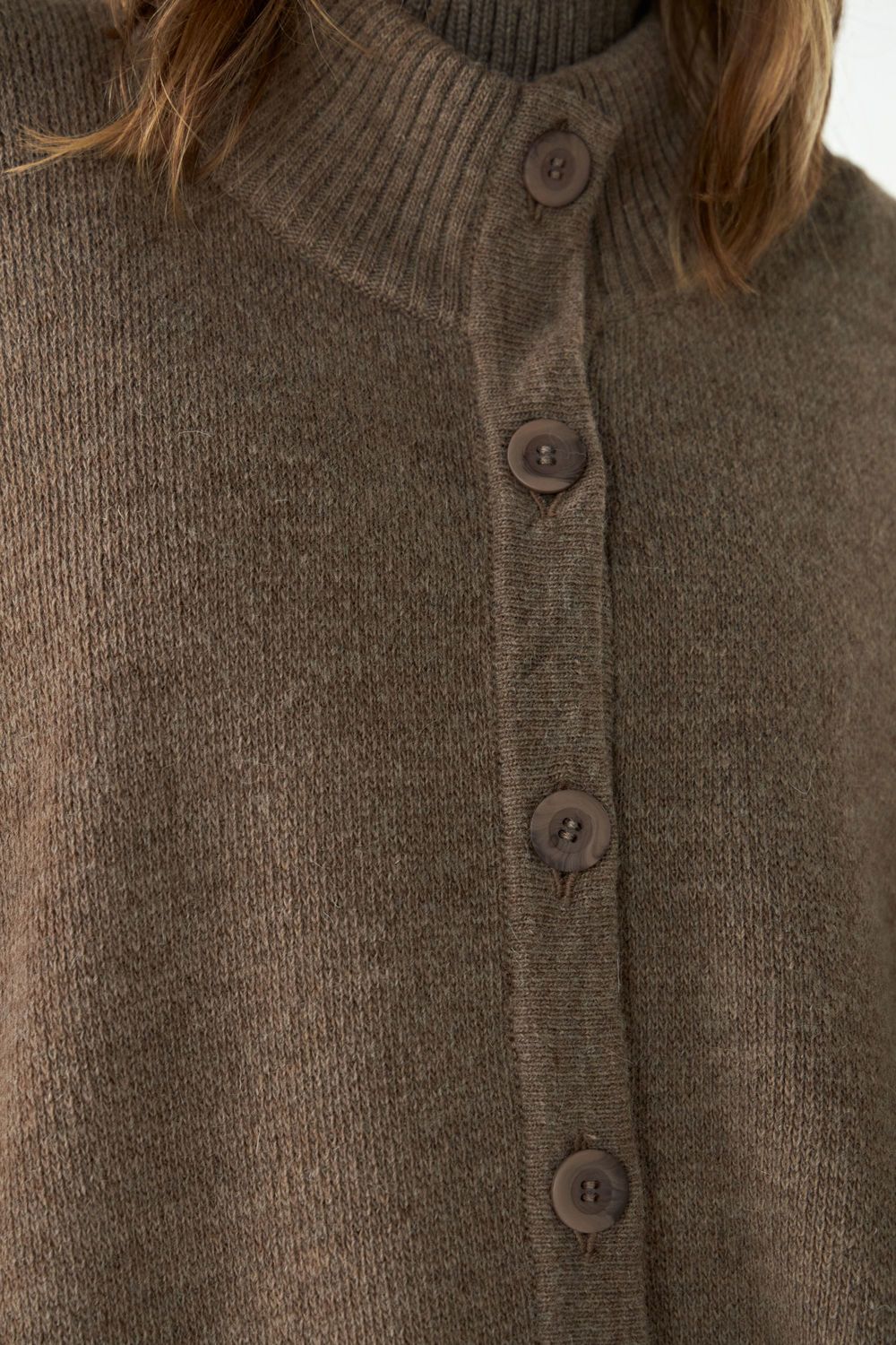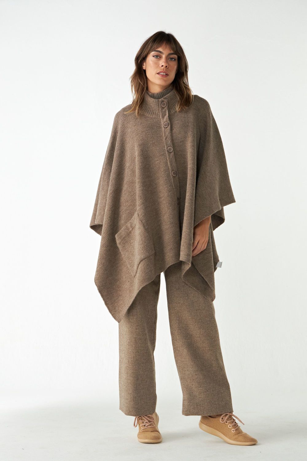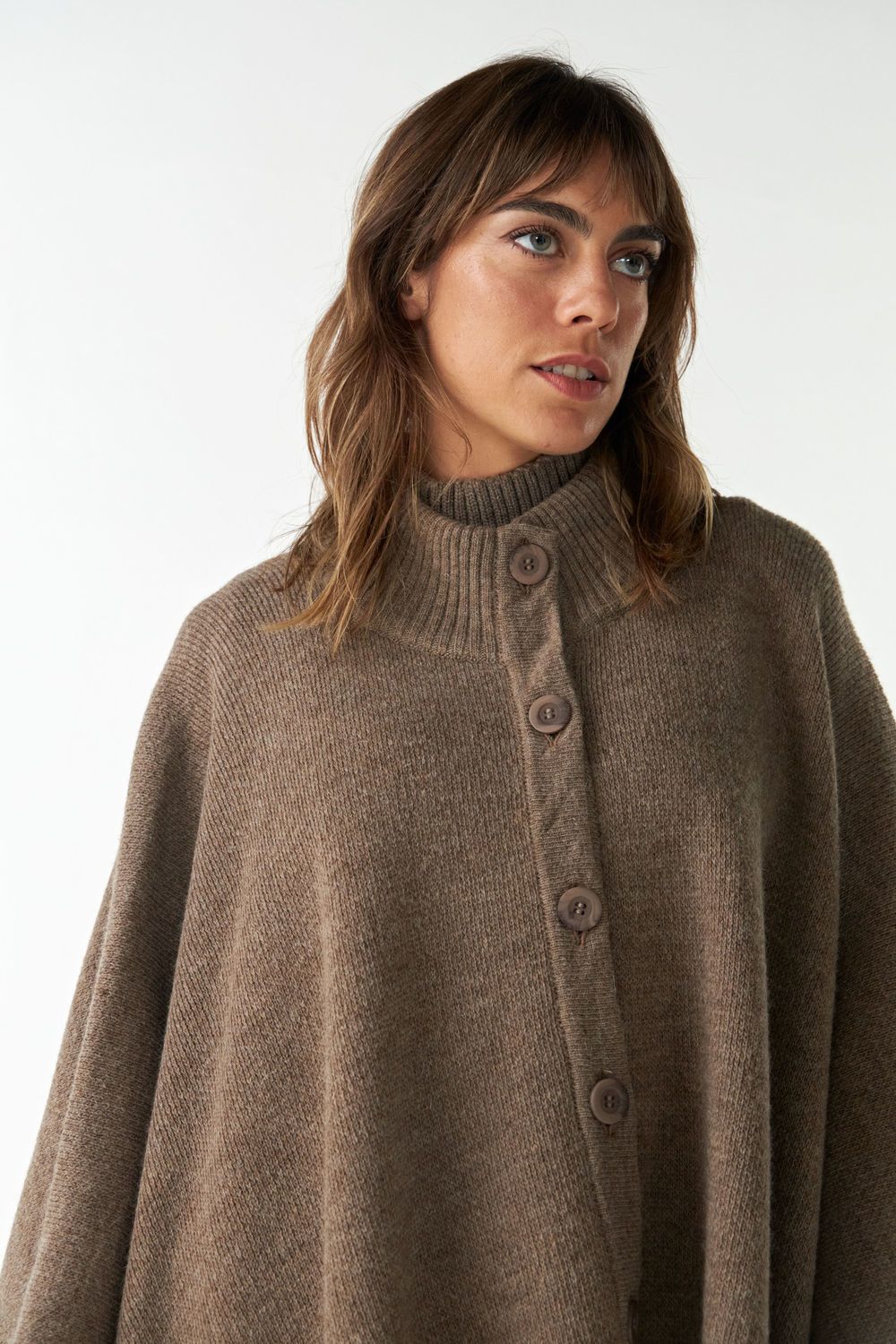 Capa de tejido de punto, con botones y bolsillos en la delantera. Una prenda clásica,