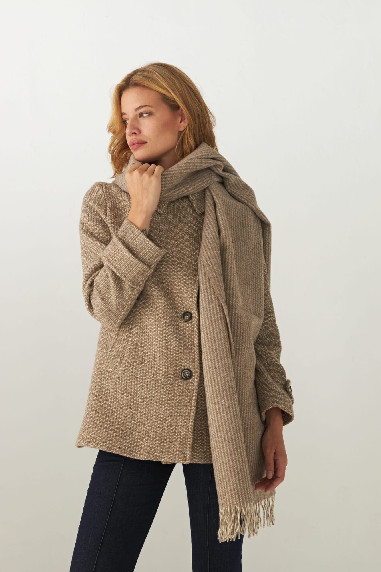 Tela 100% lana fina sin teñir, diseñada exclusivamente por Don Baez. Hecha 100% en Uruguay.