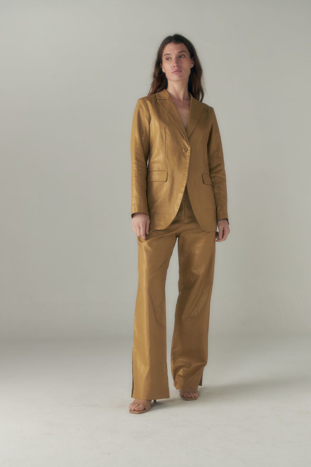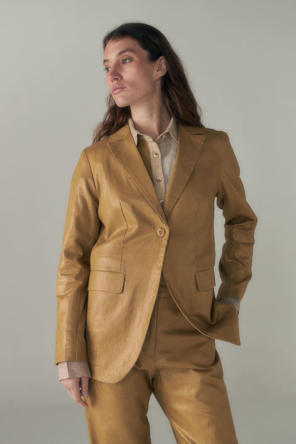 CHAQUETA SASTRERA CON RUEDO CURVO Y BOLSILLO OJAL CON TAPITA.TAJO EN LA ESPALDA.