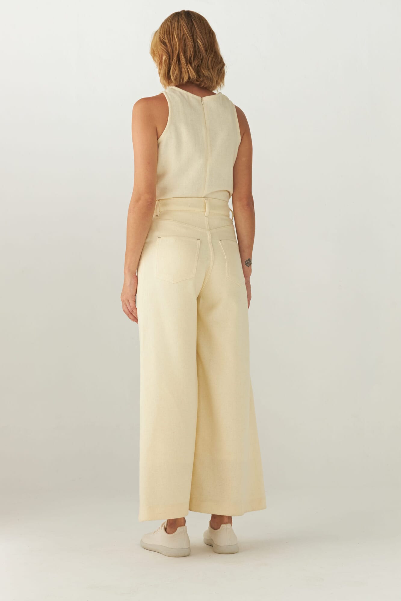 Pantalón de tiro alto, con corte jeanero. Cómodo y elegante. Combinalo con chaquetas, buzos y ruanas. Tela 100% de lana fina sin teñir, diseñada exclusivamente por Don Baez. Hecha 100% en Uruguay.