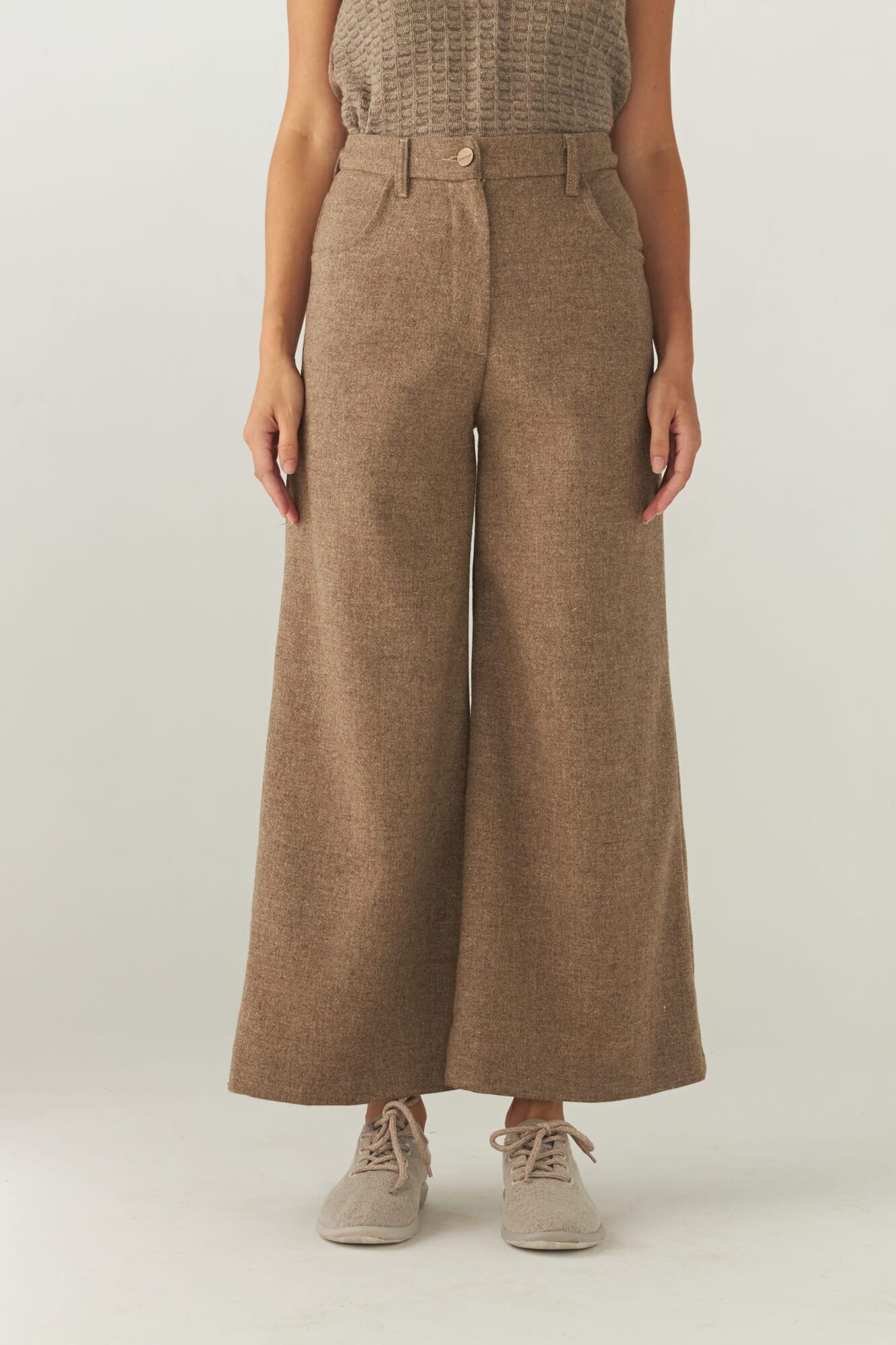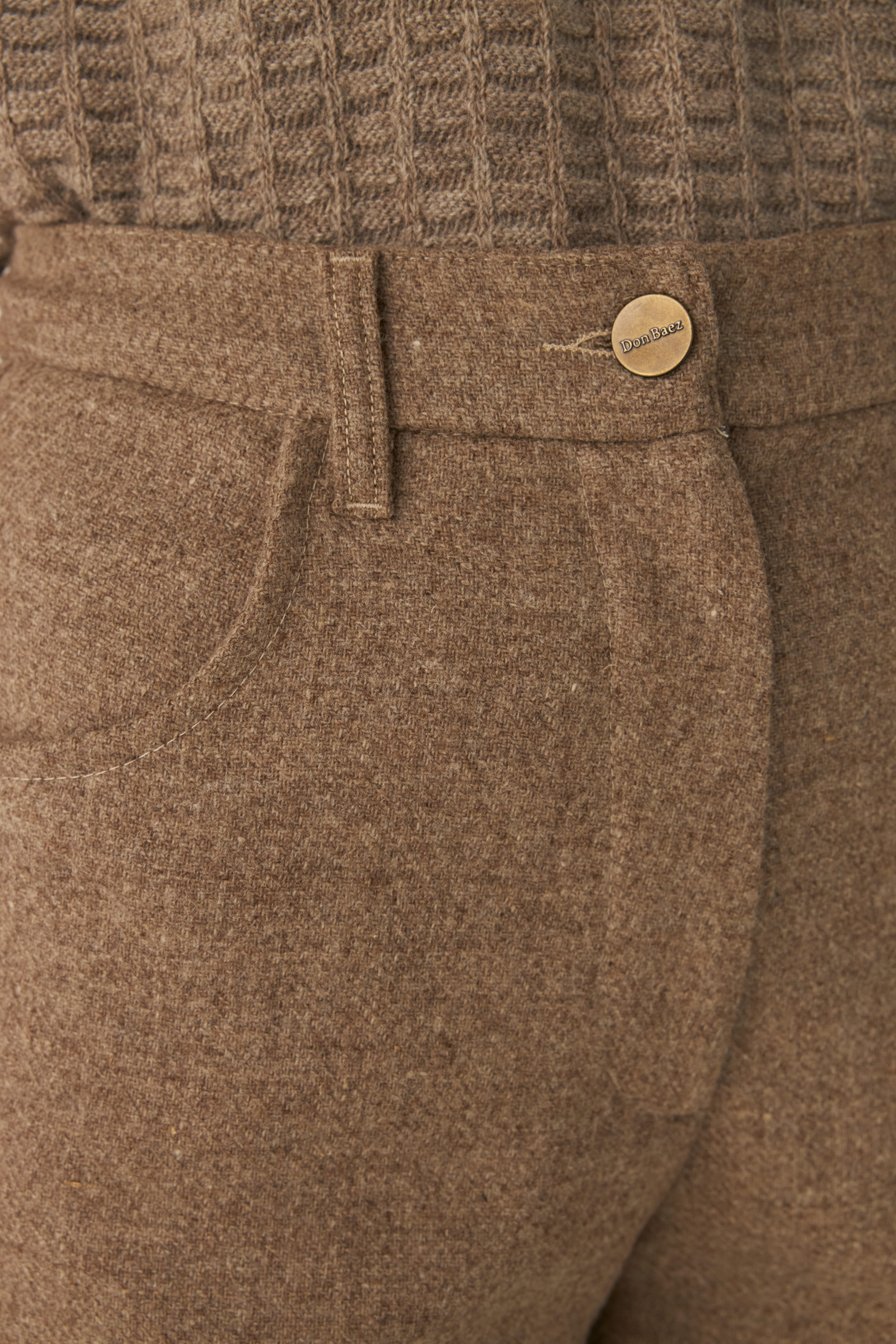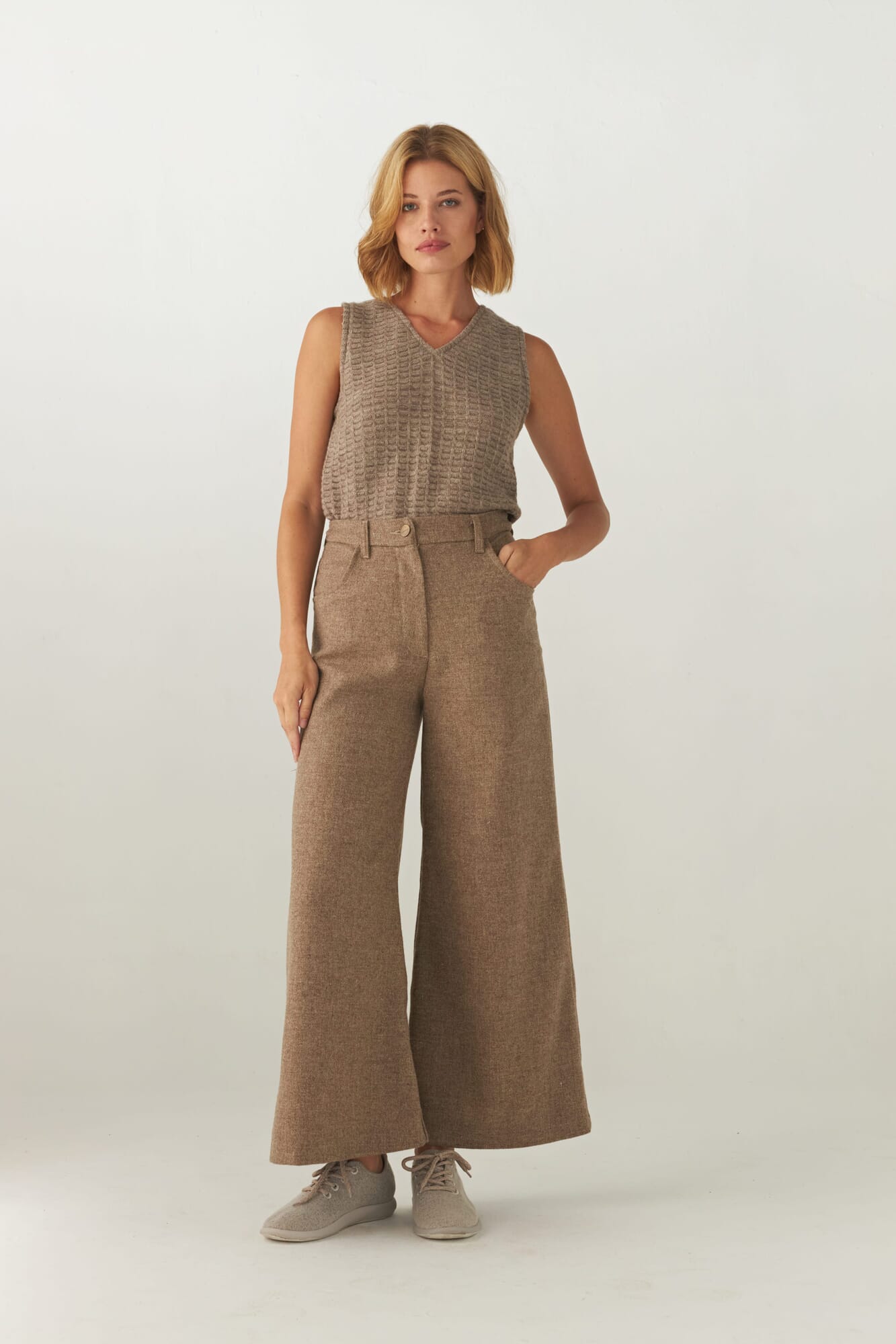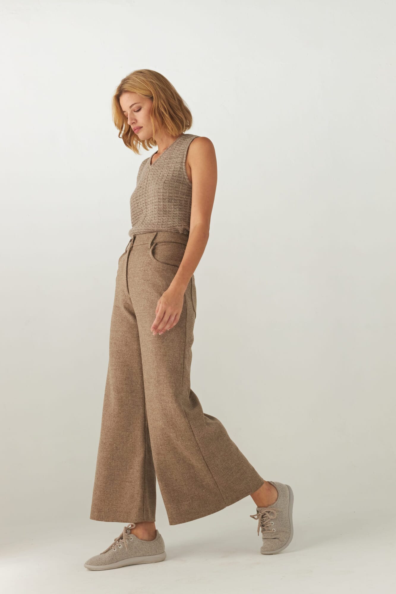 Pantalón de tiro alto, con corte jeanero. Cómodo y elegante. Combinalo con chaquetas, buzos y ruanas. Tela 100% de lana fina sin teñir, diseñada exclusivamente por Don Baez. Hecha 100% en Uruguay.