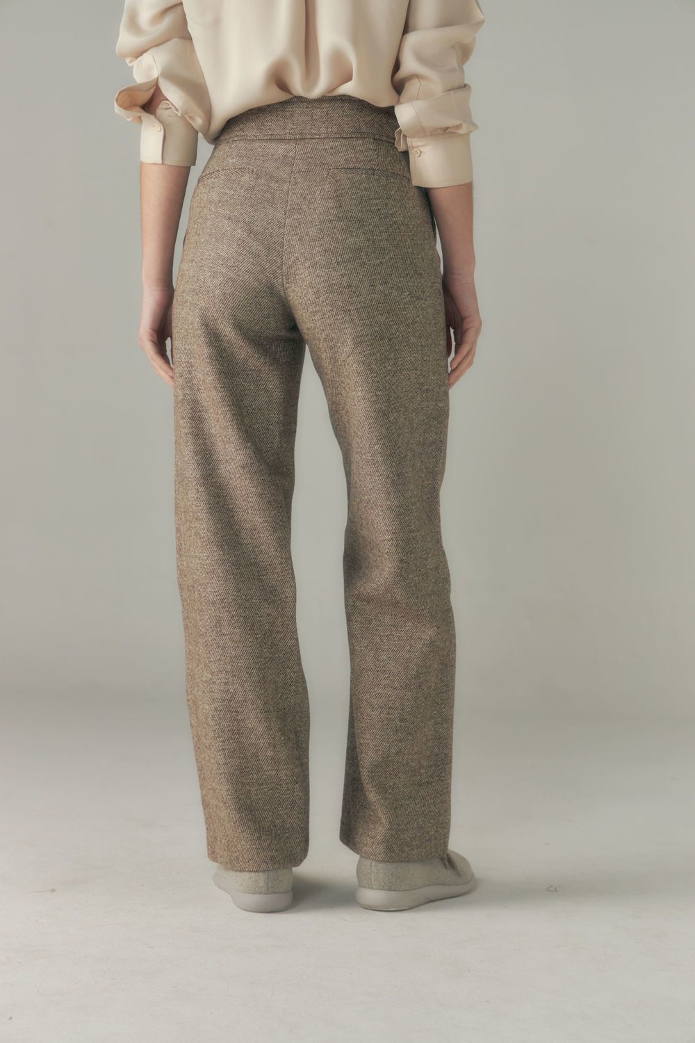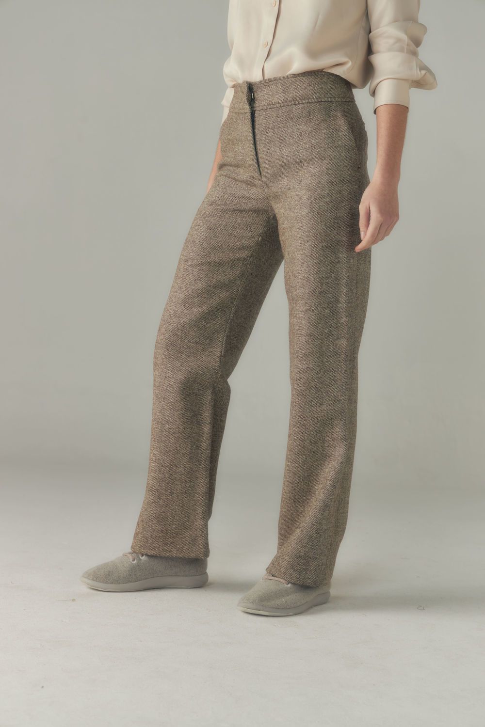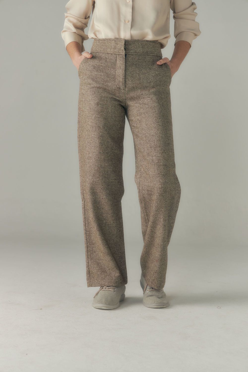 Pantalón de tiro alto y pierna recta. Cómodo y elegante. Combinalo con chaquetas, buzos y ruanas. Tela 100% de lana fina sin teñir, diseñada exclusivamente por Don Baez. Hecha 100% en Uruguay.