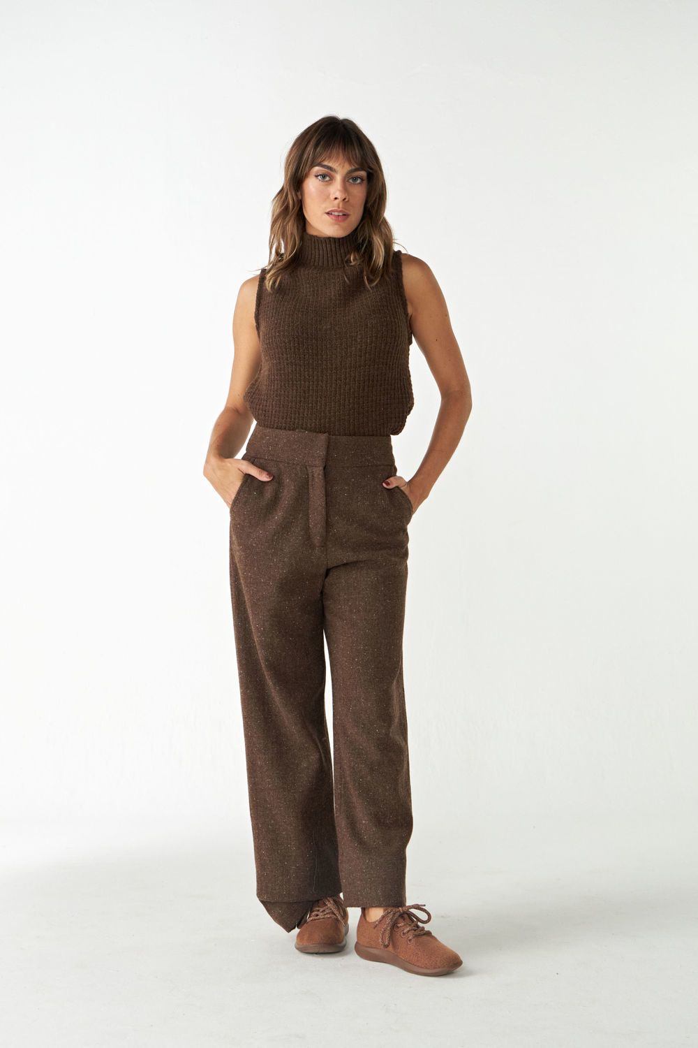 Pantalón de tiro alto y pierna recta. Cómodo y elegante. Combínalo con chaquetas, buzos y ruanas.