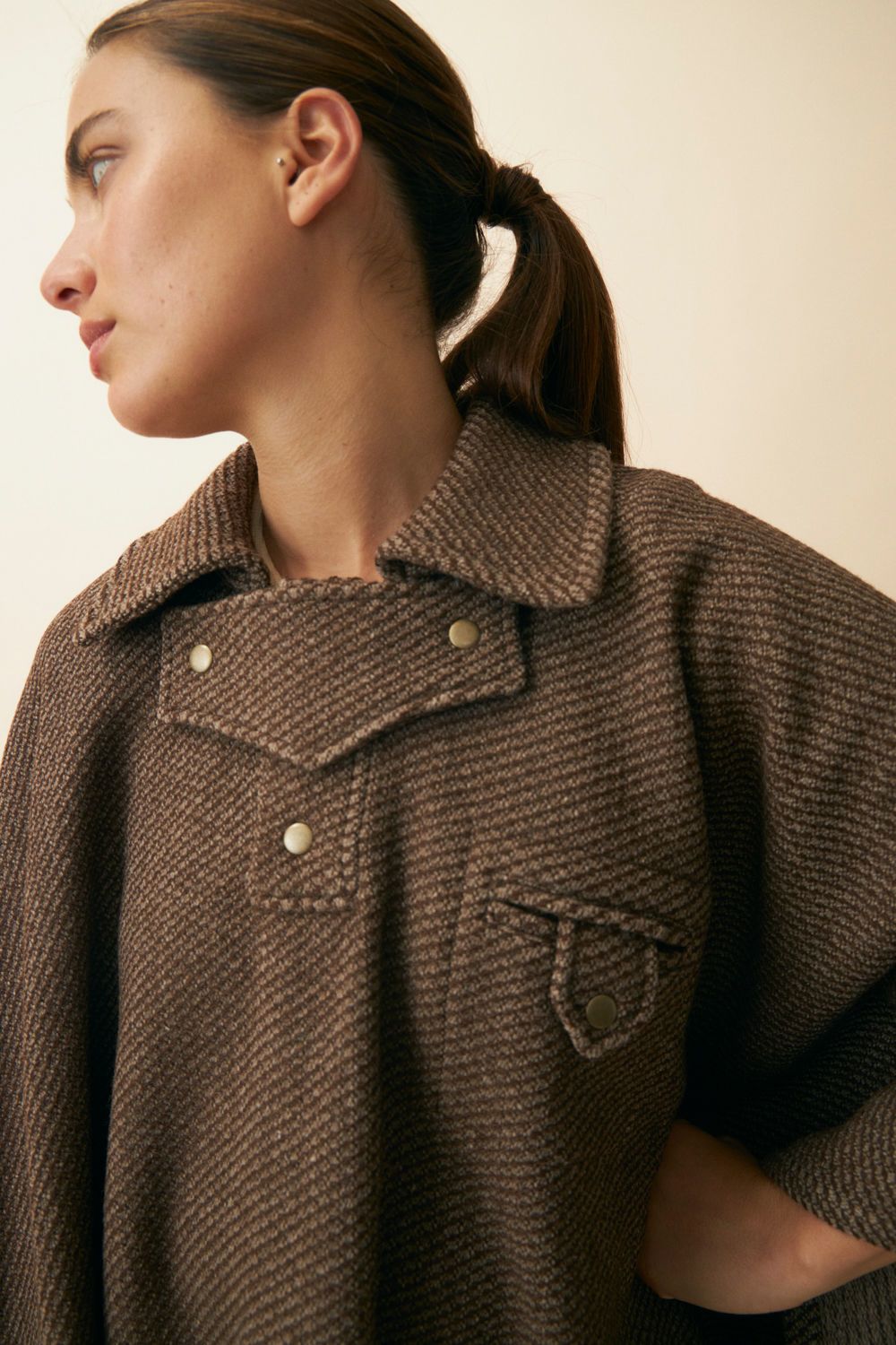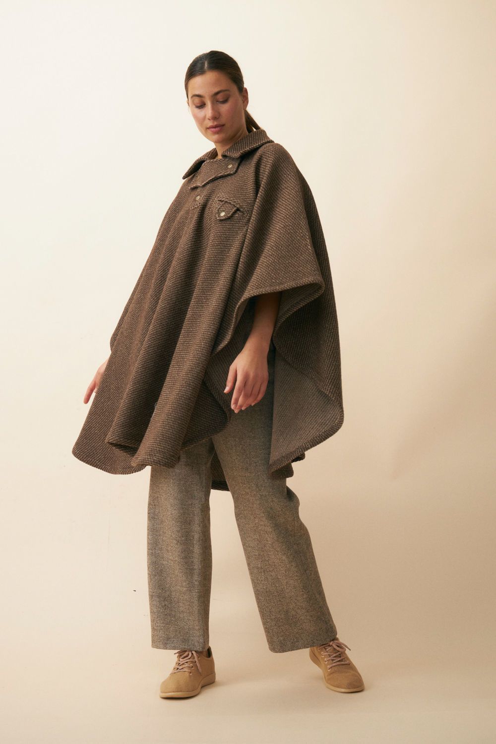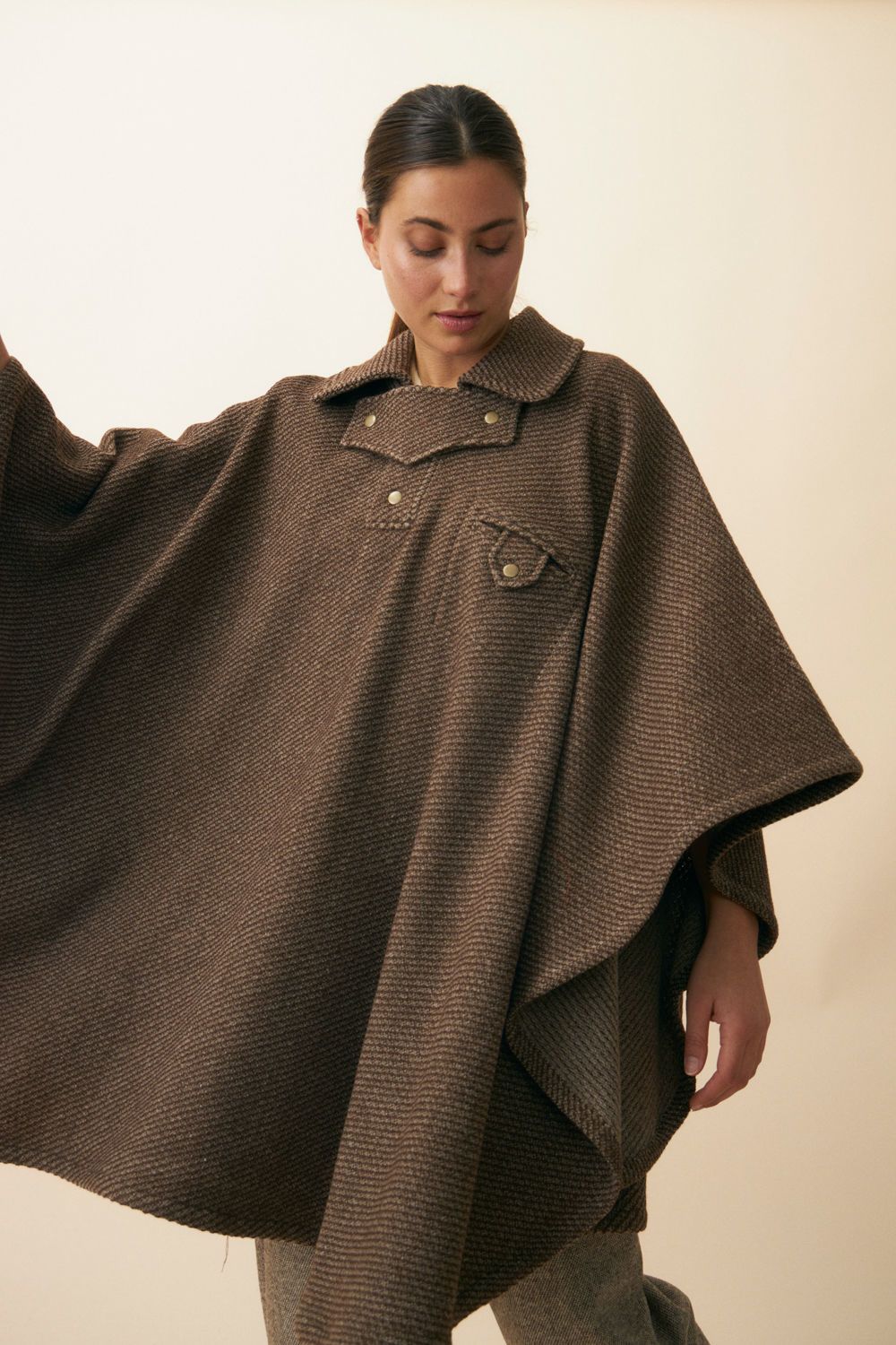 Poncho con cuello, cartera con broches a presión y bolsillo ojal. Prenda unisex, de estilo campestre. Peso 1,700kg