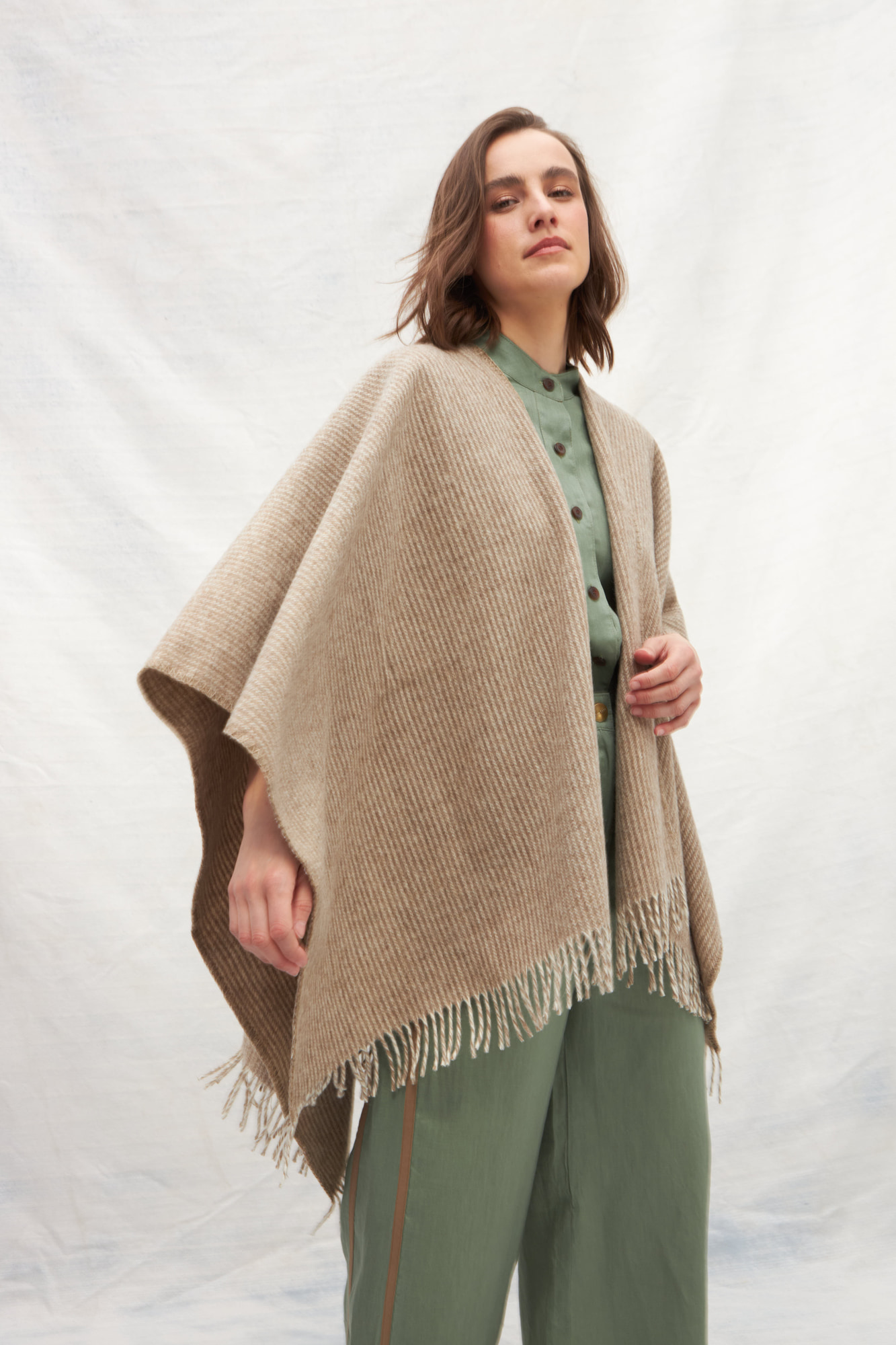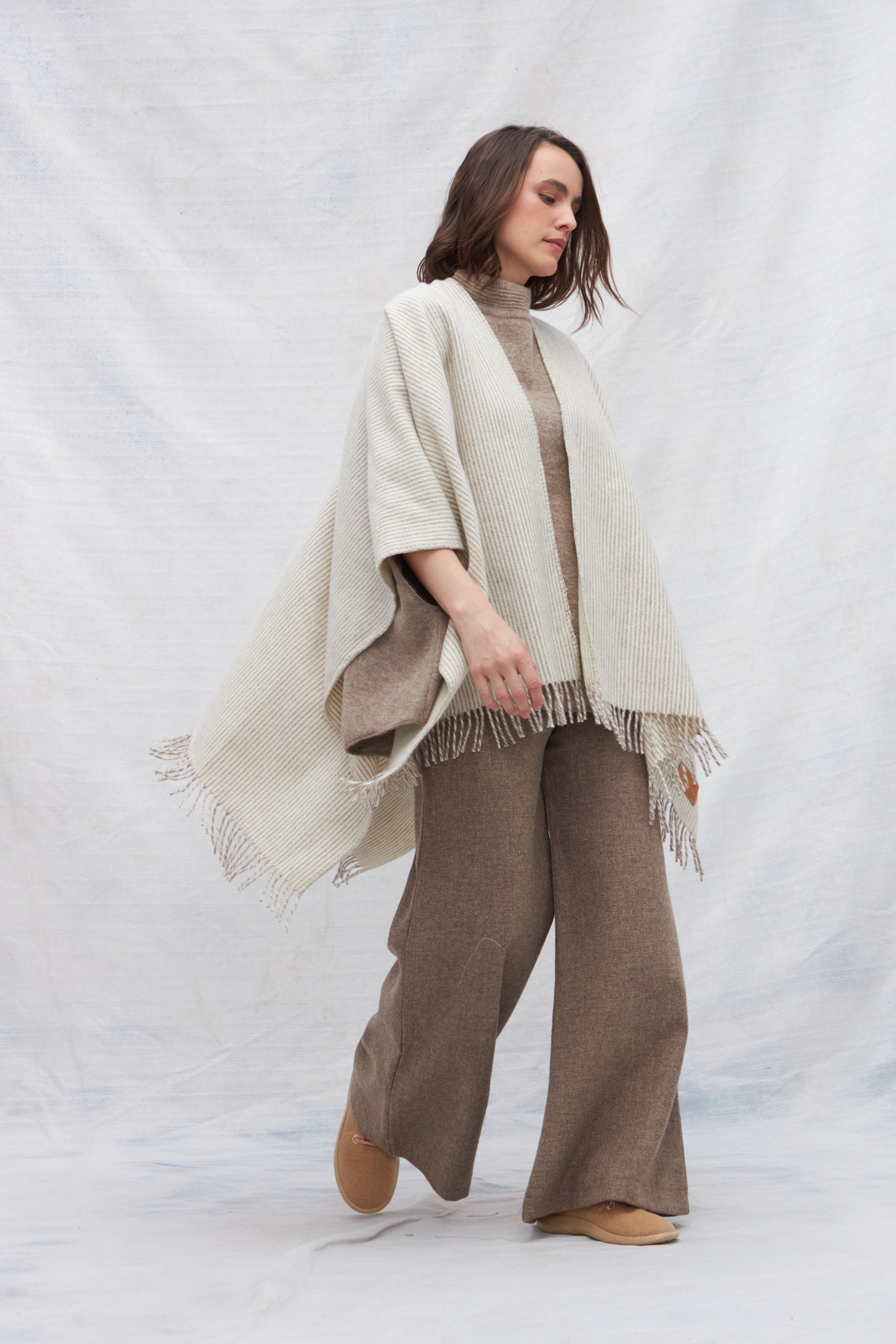RUANA MONTELAN ES EL ABRIGO PERFECTO PARA CUALQUIER ESTACION . HECHA 100 % CON LANA SIN TEÑIR .
